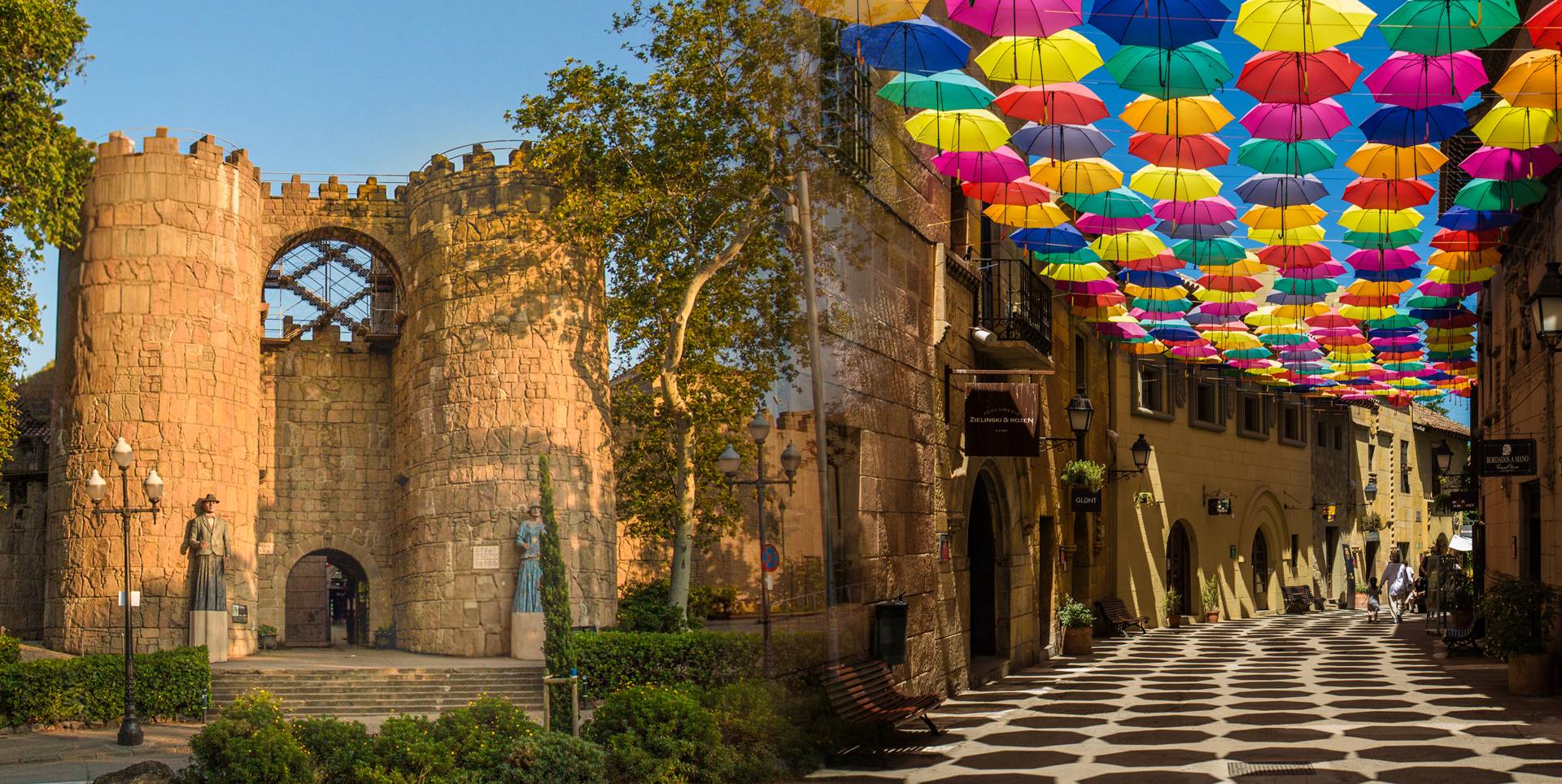 Entrar por la puerta principal del Poble Espanyol.